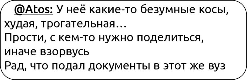 Первый день в универе прошёл на удивление хорошо. Мы познакомились с одногруппниками, изучили расписание, обменялись номерами и создали общий чат в мессенджере.