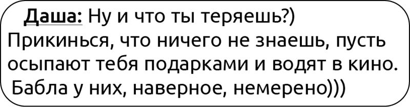 Я ожидала услышать от Даши что угодно, но только не пожелания поднять попу и действовать как стерва, крутить-вертеть парнями, которые могли подтолкнуть ту девочку к шагу с крыши. Не зря она про Кравцова спросила, мысли у этих двоих рождались одинаковые.