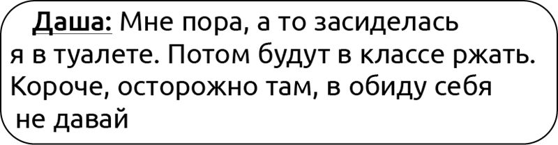 Вообще, с Дашкой мы дружили со второго класса. Она пришла к нам учиться, когда их семья переехала в соседний дом. И мы сразу привязались друг к другу, ходили вместе в школу и из школы, болтали, смеялись. Я очень радовалась, что нам интересно вместе. До этого мама заставляла общаться с отличницей Алиной, которая мало разговаривала и всё время думала только об уроках. С ней было скучно, так что, когда появилась Даша, я поняла, что такое настоящая дружба. Весёлое тогда было время, никаких тебе парней и сложностей, связанных с ними.