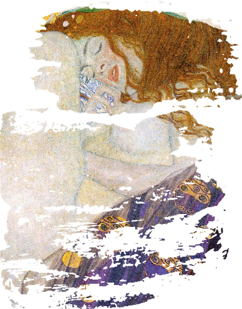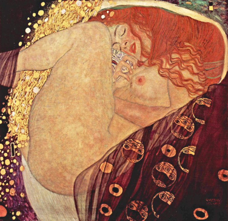 На картине Густава Климта, австрийского мастера стиля модерн, она занимает все пространство, в то время как дождь сведен к орнаменту и к тому инструменту, который дарит ей удовлетворение. Выбор позы и искаженная перспектива придают телу Данаи необычайную сексуальность.