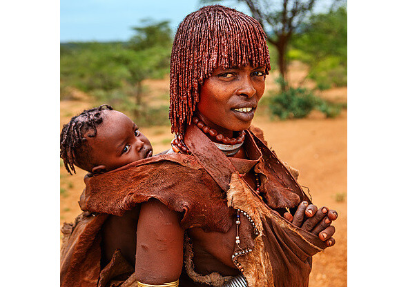 Вот молодая женщина, на вид совсем ещё подросток, отвязала и повернула к груди мешочек. Развернула сложенный конвертиком кожаный мешок, в котором лежит маленькое тельце ребёнка. Пытается покормить ребёнка грудью. Малыш отчаянно хватается ртом и ручонками за обвисшую кожу с соском. Но молока нет, и тогда женщина, отхлебнув воды, даёт малышу свои посиневшие губы.
