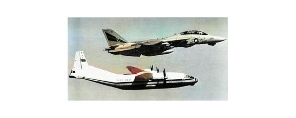 Самолёты с опознавательными знаками ВВС США уже кружились вокруг нашего Ан-12. Потом один истребитель пристроился слева, а другой, по докладу стрелка, под хвост Ан-12, прикрывая фотолюк на задней створке грузолюка. Видимо, хорошо изучили лётчики НАТО конструкцию самолёта Ан-12 и знают, где устанавливается авиационный фотоаппарат АФА-42.