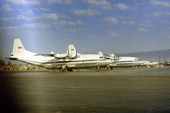 Стоянка самолётов Ан-12БП на аэродроме Боле. 1984 год.