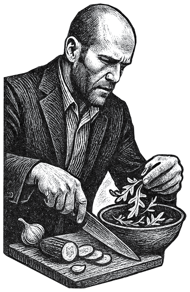 Кухня – это не твой брат и товарищ, это коварное царство, где каждый сам за себя. Эта кухня боится меня, ведь я видел ее истинное лицо: раскаленная плита, ножи-бритвы, горы пищевых отходов. Одна ошибка – и ты ошибся.
