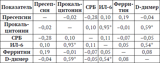 Корреляция между уровнем пресепсина и концентрацией маркеров воспаления