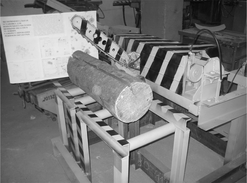 Все вышеперечисленные требования учтены авторским коллективом кафедры ТОЛДП Вологодского института права и экономики при разработке инновационной установки для поперечного пиления цепными пилами в условиях саморегулирования (патент № 102910), и принято решение, создать модель установки с проведением экспериментальных исследований в учебных мастерских.