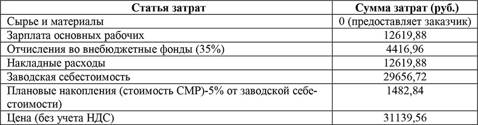 На основе калькуляции можно, исходя из того, что количество тележек известно, можно спрогнозировать объем прибыли от услуг по изготовлению тележек.