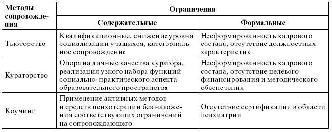 Все современные методы сопровождения имеют ряд ограничений формального и содержательного характера (таблица 1).
