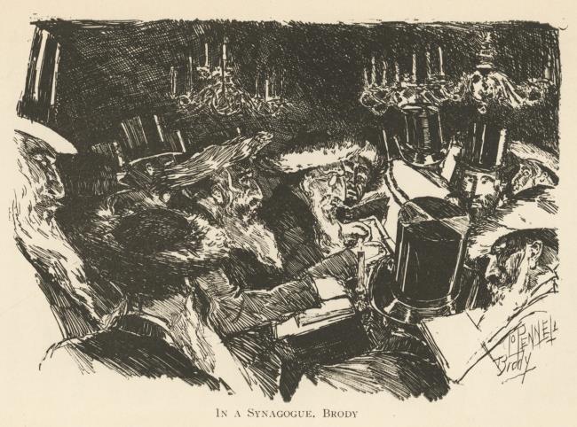 Джозеф Пеннелл. В синагоге, Броды (Ил. 6) Pennell J. The Jew at Ноте. London, 1892