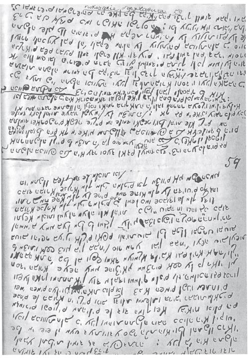 Фрагмент ответов Залмана Боруховича на первом следствии (на древнееврейском языке). 1798 РГАДА. Ф. 7. Оп. 2. Д. 3140. Л. 59