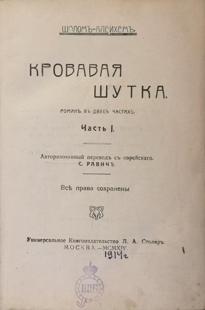 Первое русское издание «Кровавой шутки» (М., 1914) Обложка и титульный лист