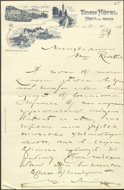 Сарре Равич от 13 марта 1913 года РГАЛИ. Ф. 1196. Оп. 1. Ед. хр. 21. Л. 45