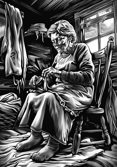 Закончив работу, бабушка одобрительно осмотрела носок: