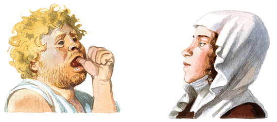 – Ещё спрашиваешь! – кричит великан. – Что ты в эти лепешки натолкала? Два моих лучших зуба сломались.