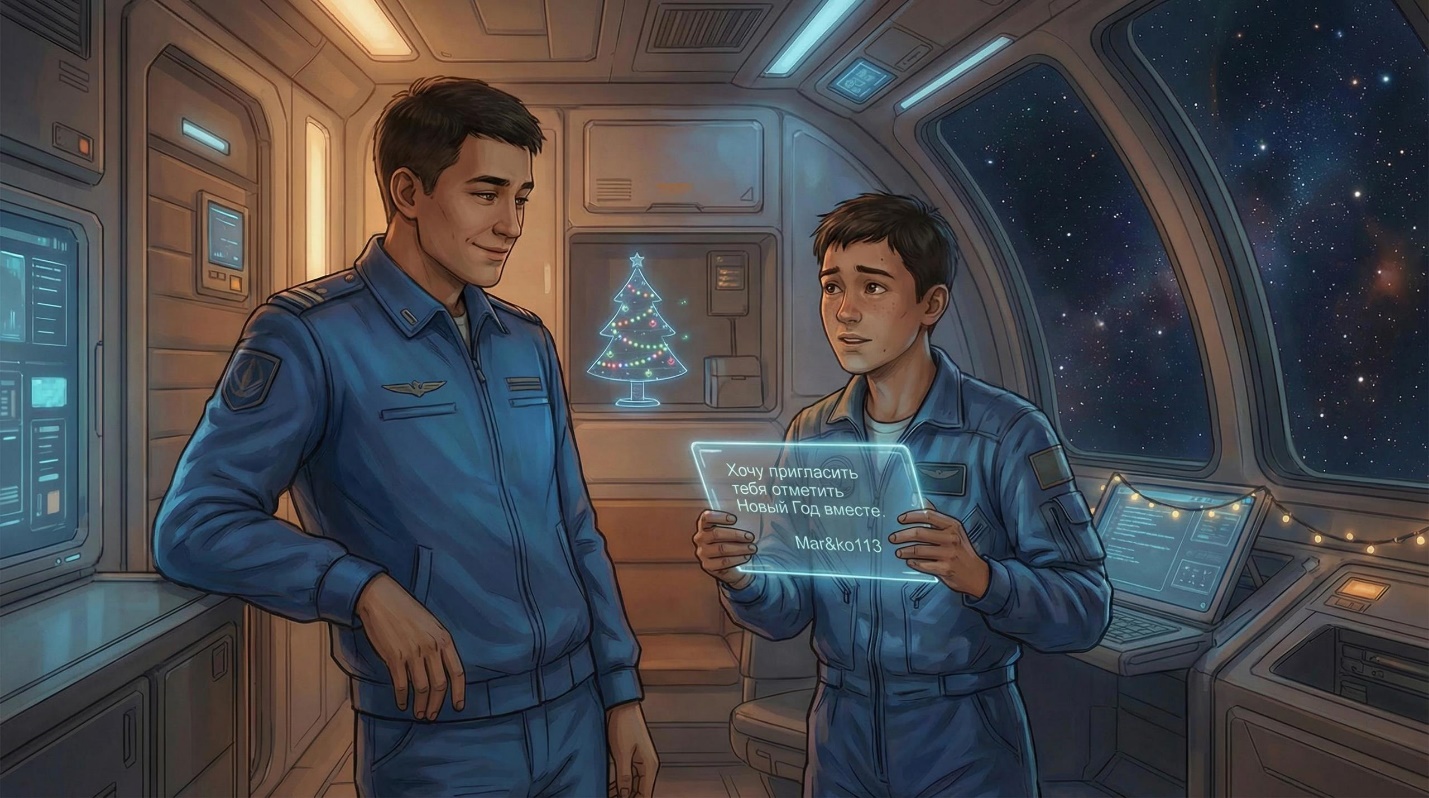 – «Хочу пригласить тебя отметить Новый Год вместе. Mar&ko113», – вновь громко зачитал сообщение и закатил глаза. – Проклятые астероиды, а это ещё что такое? Мар-энд-ко-один-один-три?!