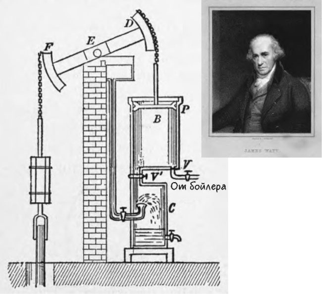 Знаменитый паровой двигатель Джеймса Уатта (Рисунок любезно предоставлен фондом Wellcome Trust)