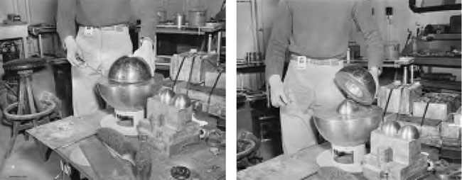 Сначала он поместил шестикилограммовую сферу на опору. Плутоний не только радиоактивен, но и ядовит (почти как мышьяк), поэтому сфера была обернута никелевой пленкой, так что ее можно было брать голыми руками. Ученые вспоминали, что от радиоактивного излучения она была теплой, и кто-то даже говорил, что бомба в руках напоминала живого кролика.