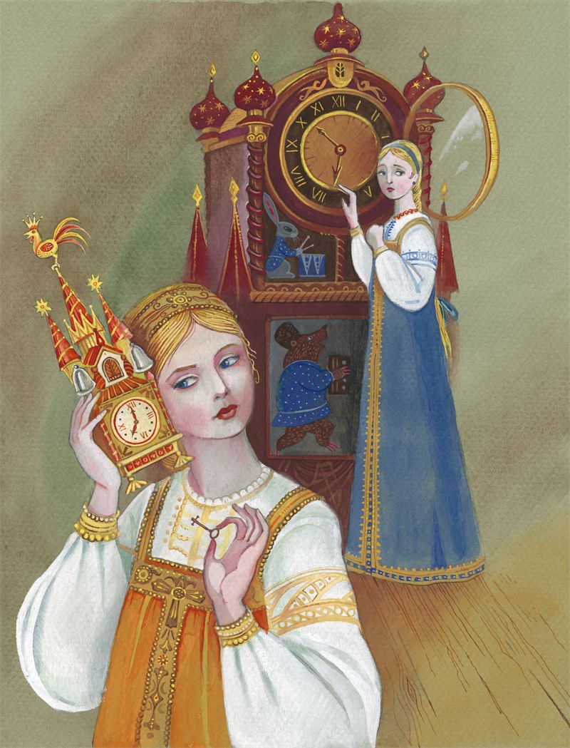 И отец её, честной купец, похвалил её за такие речи хорошие, и было положено, чтобы до срока ровно за час воротилась к зверю лесному, чуду морскому, дочь хорошая, пригожая, меньшая, любимая. А сёстрам то в досаду было, и задумали они дело хитрое, дело хитрое и недоброе: взяли они да все часы в доме целым часом назад поставили, и не ведал того честной купец и вся его прислуга верная, челядь дворовая.