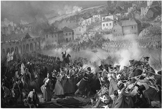Смоленск. Я опять слышу грозный, величественный гул пушек! Опять вижу блеск штыков! Первый год моей воинственной жизни воскресает в памяти моей!.. Нет! трус не имеет души! Иначе как мог бы он видеть, слышать все это и не пламенеть мужеством! Часа два дожидались мы приказания под стенами крепости Смоленской; наконец ведено нам идти на неприятеля. Жители города, видя нас проходящих в порядке, устройстве, с геройскою осанкою и уверенностию в своих силах, провожали нас радостными восклицаниями; некоторые, а особливо старики, беспрерывно повторяли: помоги бог! помоги бог! каким-то необыкновенно торжественным голосом, который заставлял меня содрогаться и приводил в умиление…
