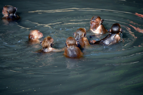 Макака может цепляться за ветки, есть бамбук! А самочек в гареме его я насчитал сорок штук!