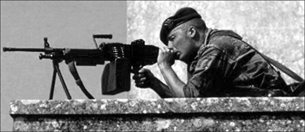 Пулеметчик 1-го батальона парашютистов на огневой позиции