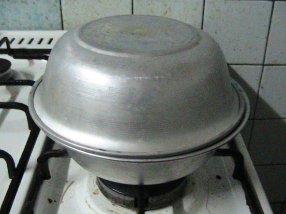 Если нет такой соли, сыпем крупную или мелкую соль. Теперь-венчиком или вилкой тщательно перемешивай: ЧТОБЫ ЖЕЛТКИ, МОЛОКО И БЕЛКИ – РАВНОМЕРНО ПЕРЕМЕШАЛИСЬ между собой! Теперь вылить в другую алюминиевую миску или блюдо, как у меня: ТОЛЬКО АЛЮМИНИЕВАЯ И СПЕЦИАЛЬНО ДЛЯ ЯИЧНИЦЫ! Ставишь блюдо с яично-молочной смесью на самый малый огонь, накрываешь другим блюдом: таким же по диаметру. И пусть потихоньку жариться: минут на 8—10. Как пойдёт запах готовой яичницы-ПОДЖАРИСТЫЙ ТАКОЙ! Вот тогда– открываешь верхнее блюдо, которым накрыта яичница. Или снимаешь обычную крышку, которой была накрыта яичница, если накрывал её просто крышкой. Края-должны быть ПОДЖАРИСТЫМИ! В ИДЕАЛЕ-как на фото!
