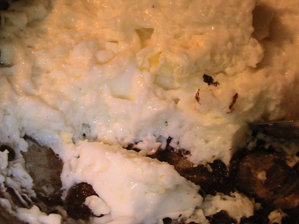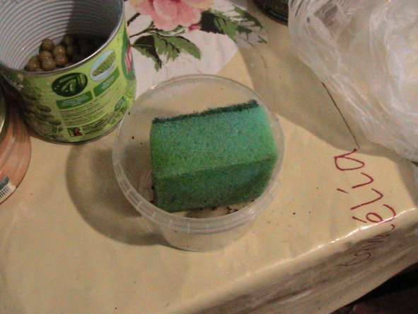 «Губка – как для посуды: но лежит в закрытой баночке в холодильнике– рядом с горчичным маслом. В эту же баночку-„отжать“ излишки масла со сковороды, плотно закрыть баночку с губкой крышечкой и убрать в холодильник – поближе к горчичному маслу!»