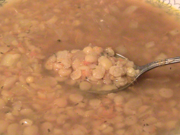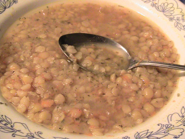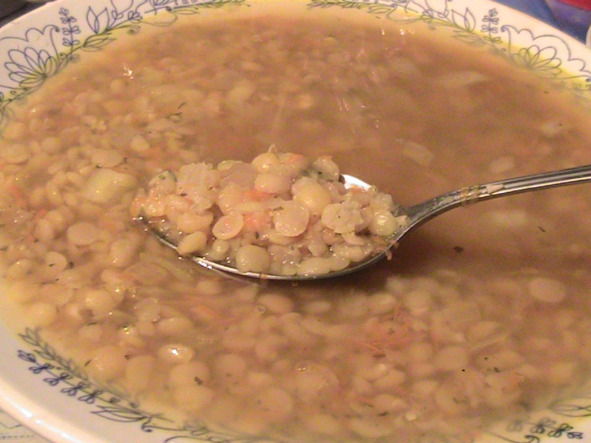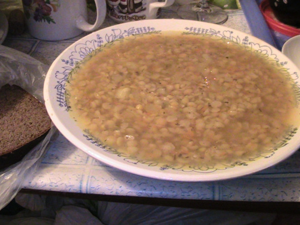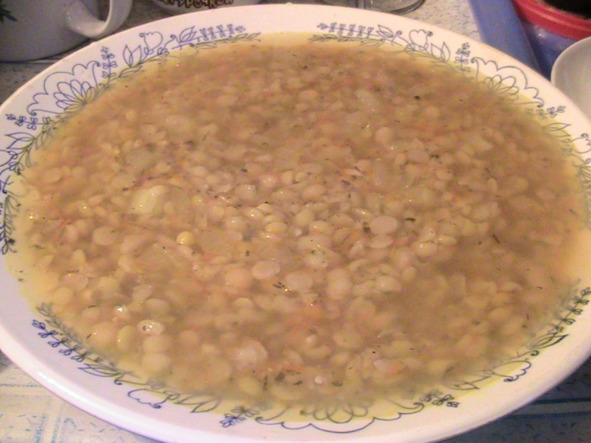 «Когда мне хочется супа, варю гороховый суп: он всегда такой вкусный. Свеженький гороховый супчик! И не на бульоне: а на воде! На самом гороховом отваре!»