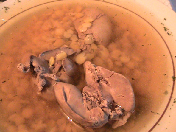 Вот ещё один мой супчик: гороховый с куриной печенью.