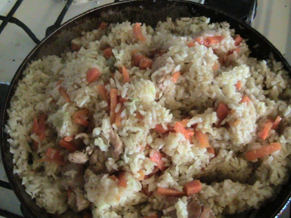 Или ещё ВАРИАНТ ПЛОВА, как оригинальный вариант: плов, в котором куриное филе – пополам с куриной печенью! С натёртой на тёрке или порезанной крупно или мелко морковью-НА ТВОЙ ВКУС! Как твоей ДУШЕ угодно!»