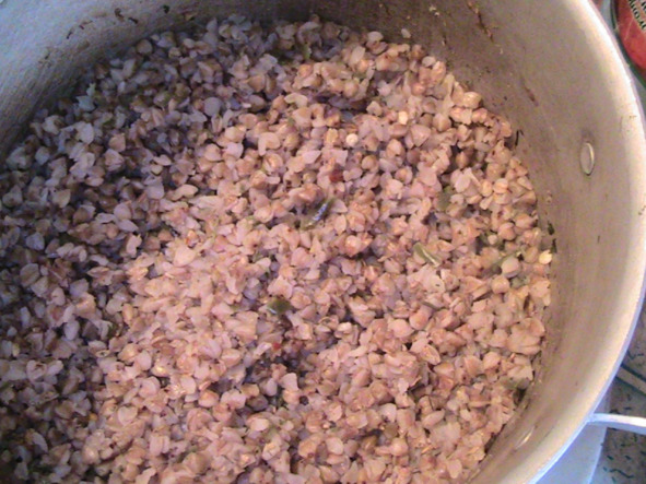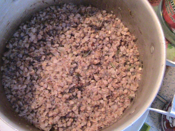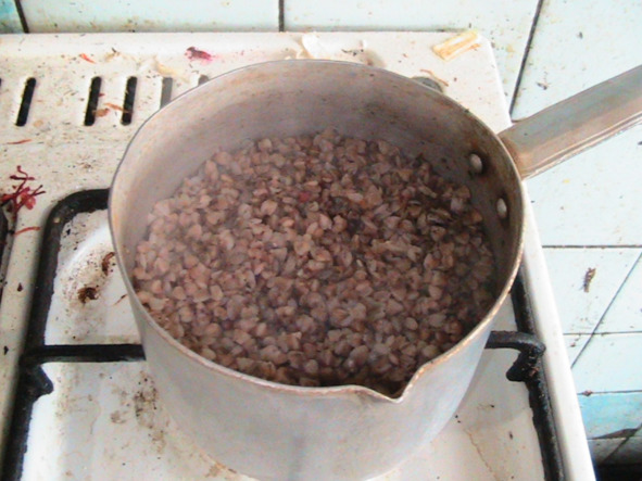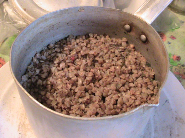 «вариант приготовления гречки – „про запас“ в алюминиевой кастрюле на 2,5 литра».