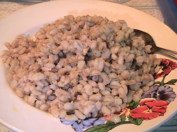 В алюминиевой кастрюльке на 2,5 литра. Налить 4 стакана холодной воды из-под крана. В горячую воду сыпем 1 чайная плюс ещё 8/10 или 2 (на мой вкус) «адыгейской» или обычной крупной соли. Промыть в глубокой тарелке 1,5 стакана перловой крупы. В трёх водах. В кипящую воду засыпать крупу. В течение закипания ворошить и снимать пену. Убавить огонь до почти малого и пусть кипит 10 минут без крышки. Потом снять пену, поворошить, убавить огонь до самого малого, плотно закрыть кастрюлю крышкой и ещё на 20 минут под крышкой. Как эти 20 минут пройдут, тщательно поворошить, плотно закрыть крышкой и ещё 10 минут. Как вариант, можно добавить в этот момент специи: на СВОЙ ВКУС И ещё и приправу «АДЖИКА УЛЯПСКАЯ. Сухая смесь пряностей и специй». В СОСТАВ которой входят: перец сладкий зелёный хлопьями, петрушка, чеснок, соль Абадзехская, перец сладкий красный хлопьями, кориандр, укроп, перец чёрный молотый, хмели-сунели, смесь перцев, перец белый молотый. Эту приправу -покупаю в «магните»». Поперчить чёрным молотым перцем. Можно добавить приправы-на «ТВОЙ ВКУС»!