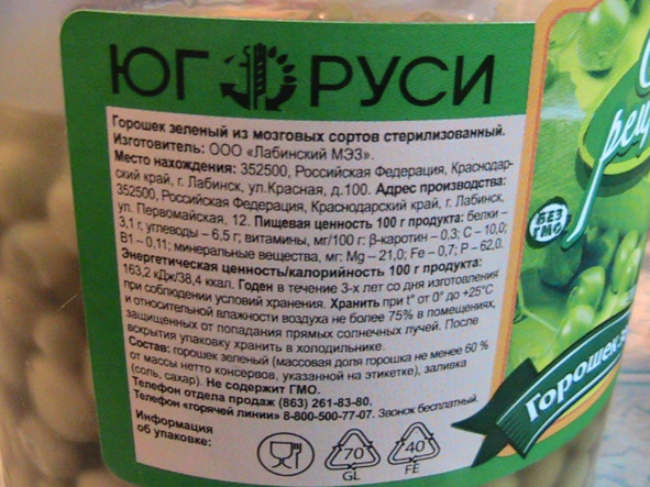 «Белковоудерживающий продукт»: Консервированный зелёный горошек».