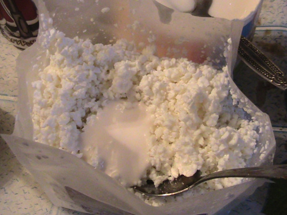 Едим обезжиренный творог – с РЯЖЕНКОЙ 2,5% жирности. Не более! Никаких 4% жирности ряженки!!! Вкус от такой вот 4% не сильно лучше, а вот соотношение жира в сутки– уже на пределе! Стройность —или жирность? Не знаю, я ем в основном без ряженки. Но иногда, когда так хочется вкусностей, ем с ряженкой: вкус– закачаешься! Обезжиренный. (НАТУРАЛЬНЫЙ). Как проверить? По упаковке проведи пальцем: она не должна быть еле-еле скользкой: почти вообще не «явно скользящей». К сожалению, я видел в выпуске новостей репортаж, как в одном городе через суд один покупатель отсудил деньги за «творог», в составе которого творога – просто не было! А на упаковке -«обезжиренный творог». И он ел его, пока что-то с его здоровьем пошло не так. Теперь из своего. Покупал наверное такой же творог. Магазины то– одни и те же! Все эти «крупные сетевые «маркеты» на каждом шагу. Ел его после занятий, иногда и в «день отдыха», и всё было до определённого момента нормально: ложку мыл под холодной водой и она не была скользкой. Но как то заметил, что стал набирать вес. А не сбрасывать, как должно быть. И провёл опять по ложке: поверхность скользила. И упаковка тоже. И сразу отказался от него. Поэтому, ешь только обезжиренный творог, который не «творожный продукт»! Для начала– ешь, когда хочется есть: не ограничивай себя конкретной дозой:250 грамм,300 грамм, 500 грамм… Ешь– сколько захочешь! Когда начнёшь привыкать к чувству НАСЫЩЕНИЯ без хлеба на твороге, тогда начни потихонечку и осторожно уменьшать дозу. И постепенно —переходи на уменьшение поливания ряженкой и посыпания сахаром: по минимуму, для вкуса. Достаточное количество, но без «лишка»!