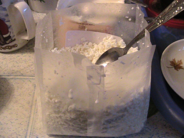 На следующий день -молоко не пью вообще! В «день занятий» молоко обязательно: молока -побольше, например и в яичницу, и так выпью с половину гранёного стакана, которым «мерил» перед этим молоко в яичницу… Стараюсь брать магазинное, 2,5% жирности, или чуть жирнее: в литровых пластиковых (ВРЕДНЫХ) бутылках, привезённого соседнего города Волжского. На этикетке молока написано:" молоко 3,4—6,0% жирности…» Вообщем, ОСНОВНОЕ МОЛОКО-2,5%жирности, и ИНОГДА, «по желанию и возможностям» – раз в три или четыре дня – можно и пожирнее вышеуказанное молоко. Но всегда – ПРОВЕРЕННОЕ «доступным способом проверки качества» – ПРОВЕДЕНИЕМ УКАЗАТЕЛЬНОГО ПАЛЬЦА ПО ВНУТРЕННЕЙ ПОВЕРХНОСТИ УПАКОВКИ МОЛОКА: СТЕНКИ ЕСЛИ НЕЖИРНЫЕ, то доверяю производителю. Беру МОЛОКО ТОЛЬКО ЭТОГО ПРОИЗВОДИТЕЛЯ, постоянно проверяя качество молока «ДОСТУПНЫМ способом анализа»… вышеуказанным доступным мне (и тебе) способом. СВОЕЙ ЛАБОРАТОРИИ и лаборатории поблизости -ВЕДЬ НЕТУ! Но даже если и есть где-то тут: не буду же КАЖДУЮ ПАЧКУ молока-носить туда на экспертизу! Ведь в магазинном молоке, зачастую из -за современной технологии приготовления, просто НЕТ кальция! Про это есть соответствующие фильмы и передачи, которые ты, мой друг, сможешь найти и посмотреть, ужаснувшись современным технология «приготовления суррогатов»!. Но хорошо, что молоко и творог —это идентичные и ВЗАИМОЗАМЕНЯЕМЫЕ продукты, поэтому основной источник белка и витаминов и всяких элементов, которые нужно брать из употребляемых в пищу молочных продуктов, для нас основной молочный продукт будет творог: обезжиренный и до 5% жирности. Дело в том, что необходим творог и жирный, но для нас, диетологов, необходим не более 5% жирности. С ним —кальций будет усваиваться в организме, «гармонируя» со стройностью. У меня так происходит: чередую обезжиренный с жирностью 5%. В один день занятий ем обезжиренный, в другой или в следующий после занятий покупаю пачку творожной массы (жирность 5%) с курагой. Теперь о творожной массе. Тоже: суррогаты в основном. Почему? да всё потому же: «творожный продукт» выгоднее для получения большей прибыли. Я покупаю иногда для вкуса и вместо мороженного, а также потому что нужен жирный творог – до 5% жирности, для лучшего усвоения организмом кальция. Беру всё время одну, от которой упаковка -не скользкая. А несколько дней назад купил в день распродаж творожную массу, которая у меня уже вызывала сомнение: скользкая упаковка после этой «творожной» массы. Вот, купил. А когда открыл – эта «масса» неизвестно чего плотная по консистенции, с желтоватым оттенком. и скользкая упаковка из-под этой «творожной массы» Пальцы еле отмылись с мылом!