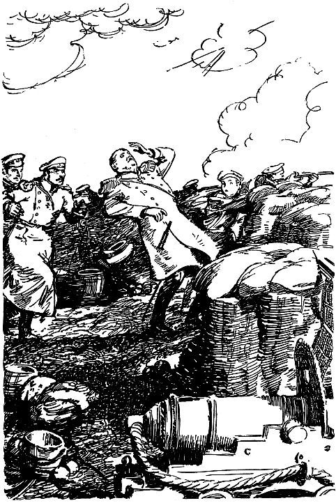 Поговорив с матросами, Нахимов направился к банкету исходящего угла бастиона. Юнга Могученко-четвертый шел рядом с Нахимовым, показывая ему зрительную трубу, расписанную цветными рисунками сигнальных флажков.