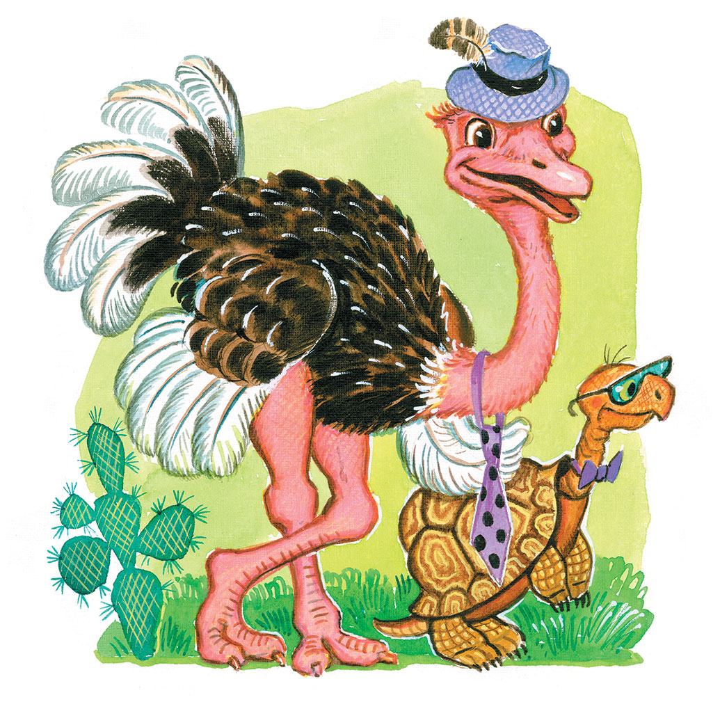 Однажды Верблюд, Слон и Жираф достали зеркало и пошли искать Носорога. А тот как раз к Страусу приставал: