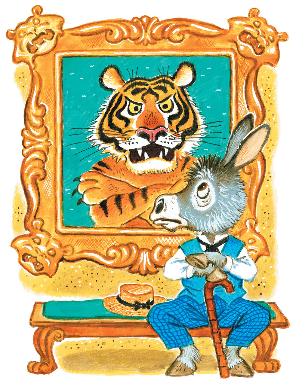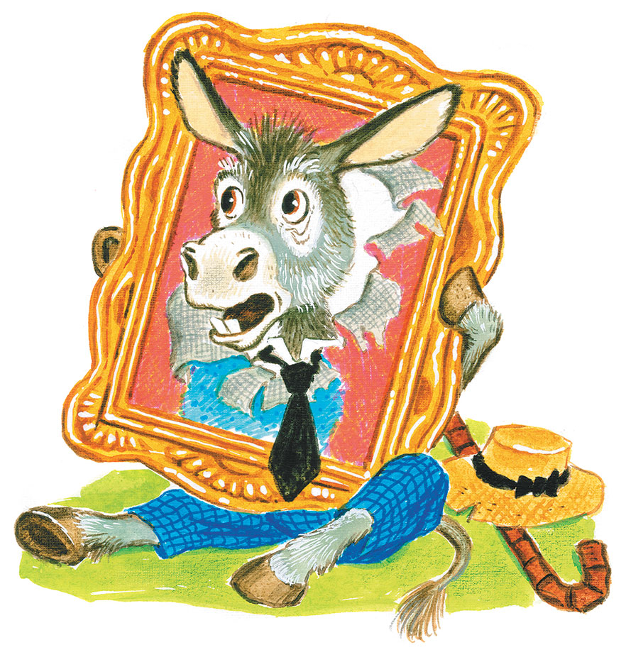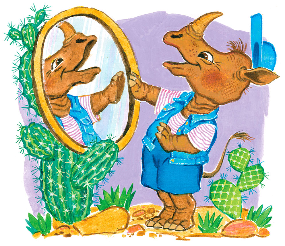 И пока он смеялся, глядя на себя в зеркало, Слон, Жираф, Верблюд и Страус поняли, что Носорог просто глуп как пробка. И они перестали обижаться.