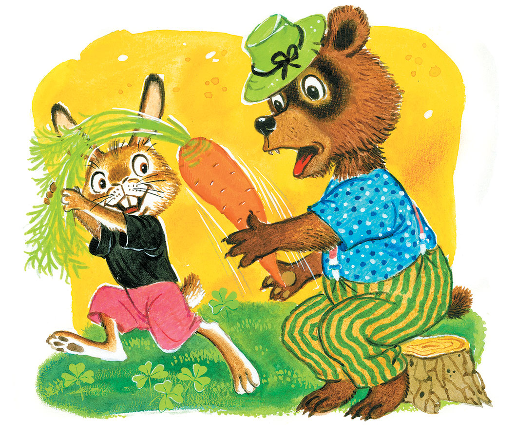 Вот шли они как-то опушкой, видят: сидит Медведь на пеньке, морковку ест.