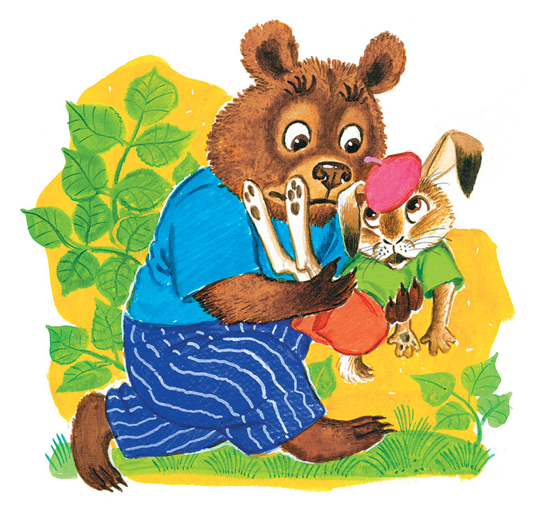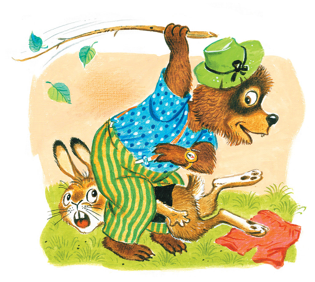 Испугался добряк Медведь. Жалко ему стало Зайца.