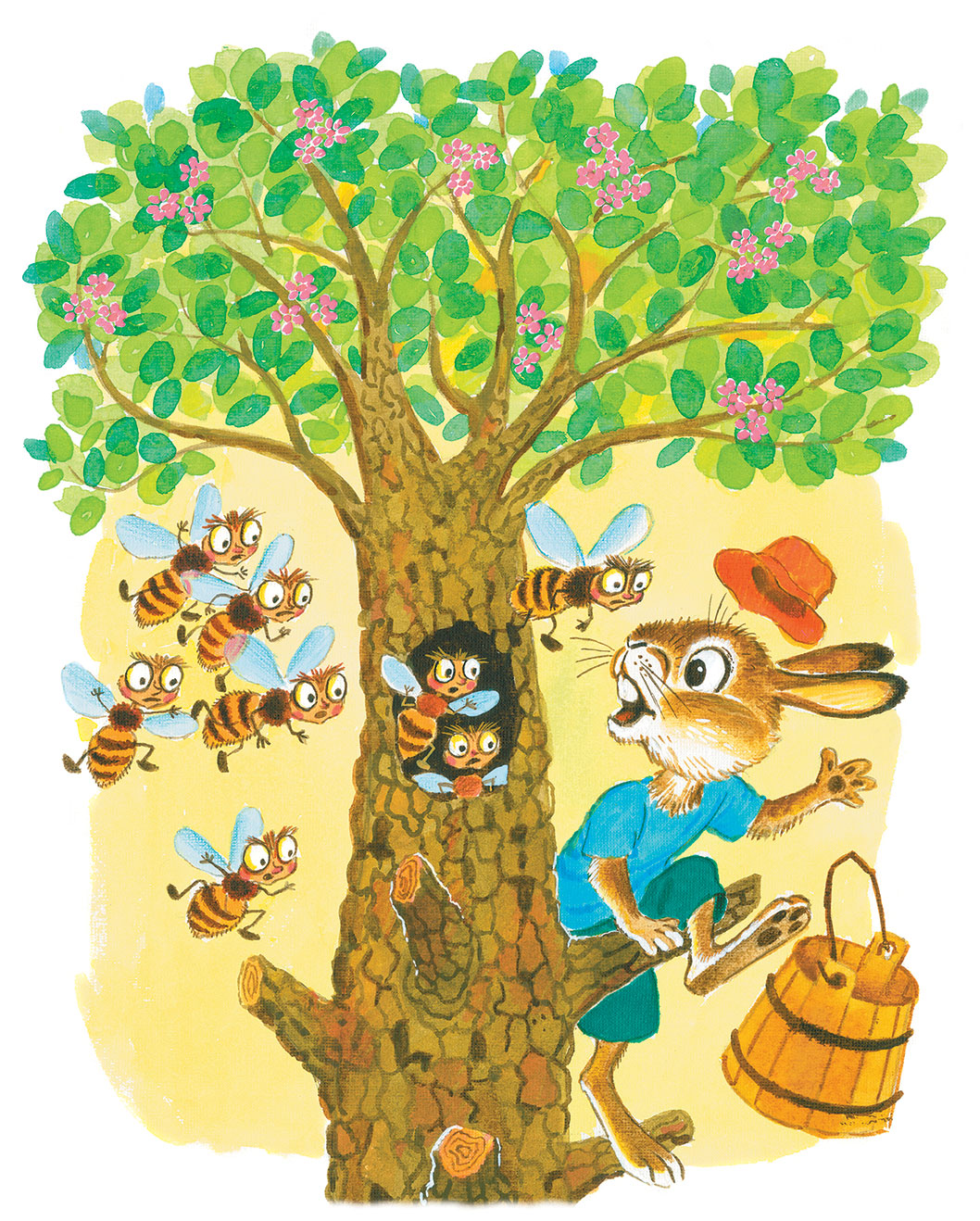 Полез Заяц в дупло. За мёдом. Забила тревогу сторожевая пчела.