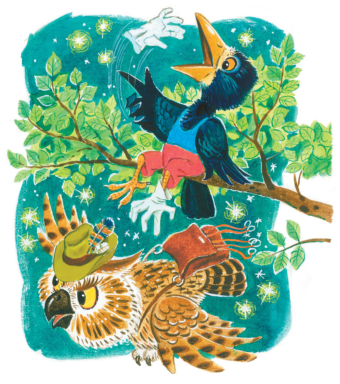 Раздобыл где-то молодой ленивый Грач пару белых перчаток. Кое-как натянул их на лапки и задрал клюв: