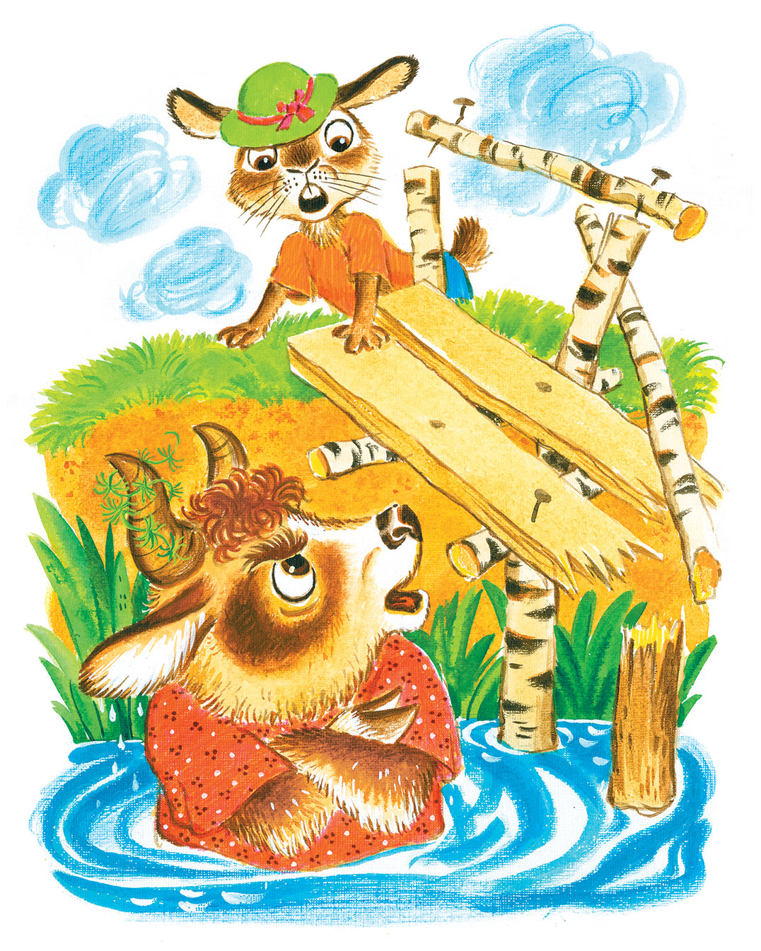 Пошёл Бык по мостику. До середины не дошёл, как мостик под ним рухнул.