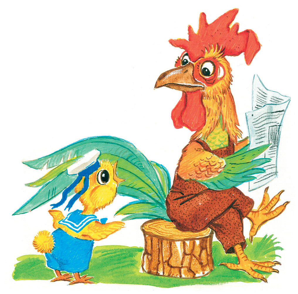 Пристал однажды маленький Цыплёнок к большому Петуху: