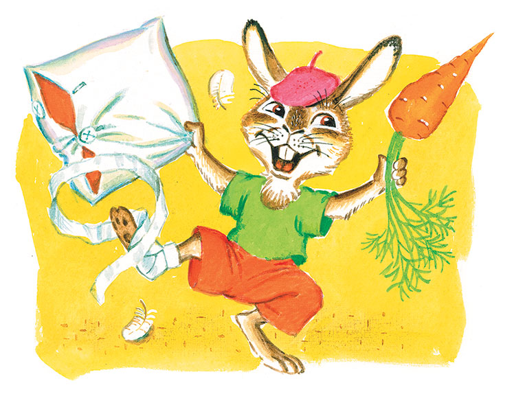 А когда Медведь уходил в лес, Заяц срывал повязку с ноги, скакал по берлоге и распевал во всё горло: