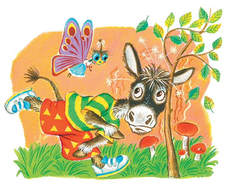 Росло посреди полянки молодое, красивое деревцо. Бежал через полянку Осёл, зазевался и налетел со всего хода на это деревцо, да так, что искры из глаз посыпались.
