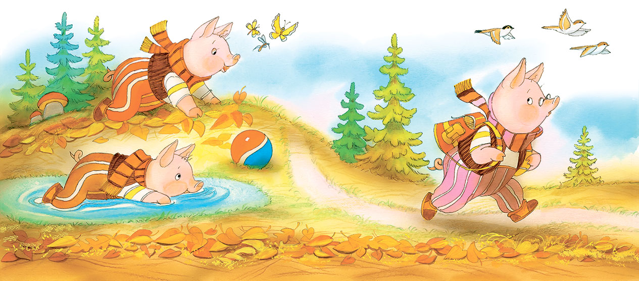 Даже имена у них были похожи. Звали поросят: Ниф-Ниф, Нуф-Нуф и Наф-Наф. Всё лето они кувыркались в зелёной траве, грелись на солнышке, нежились в лужах.