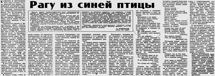 А предвестником всей этой травли была опубликованная 11 апреля 1982 года в «Комсомольской правде» статья под названием «Рагу из синей птицы», написанная неким красноярским патриотом по фамилии Кривомазов. Рассказать об этом персонаже совершенно нечего, кроме того, что перед своей, сколь безвременной, столь и бесславной, кончиной он занимал пост главного редактора… внимание! – журнала «Русская водка».