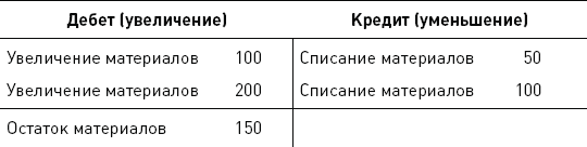 Эти суммы бухгалтер вычитает из стоимости поступивших материалов и определяет остаток по счету, который называется сальдо счета. В нашем случае сальдо счета «Материалы» равно 150 руб. Это означает, что в данный конкретный момент организация имеет неизрасходованные материалы на сумму 150 руб.