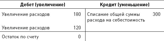 По дебету показаны две суммы – 120 и 180 руб. Это стоимость общехозяйственных (косвенных административных расходов) организации, которые бухгалтер учитывает со знаком «плюс».